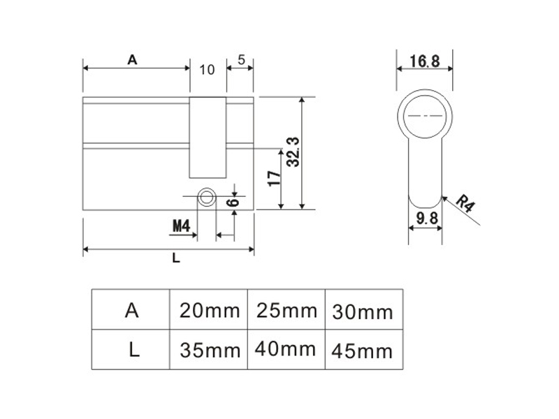 RCR-08 半邊帶擰手鎖芯(可定制長(zhǎng)度)