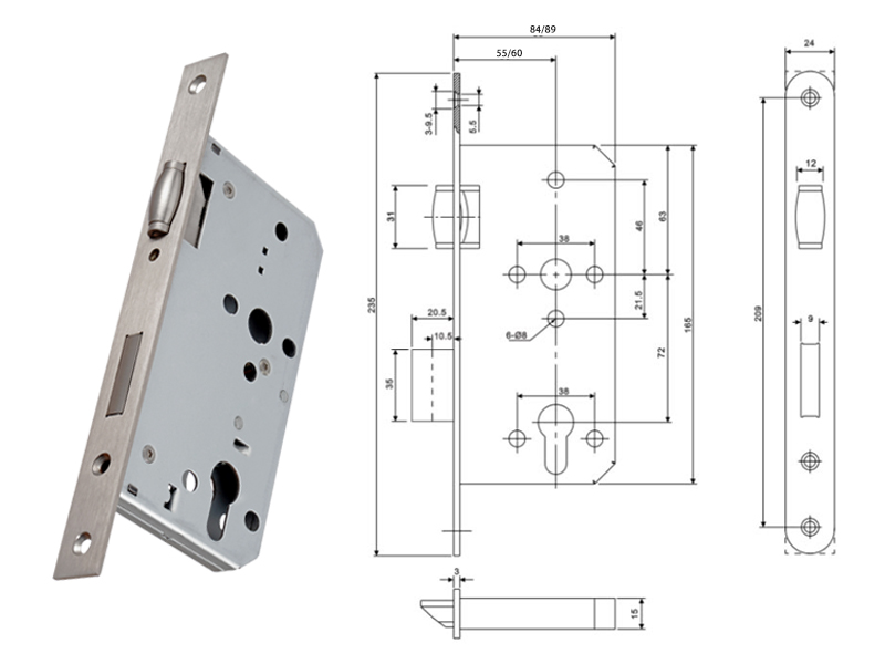 碰珠和鎖舌均為不銹鋼304材質(zhì),面板扣片有304和201材質(zhì)可選,鎖殼為電解板灰殼(防指紋板)