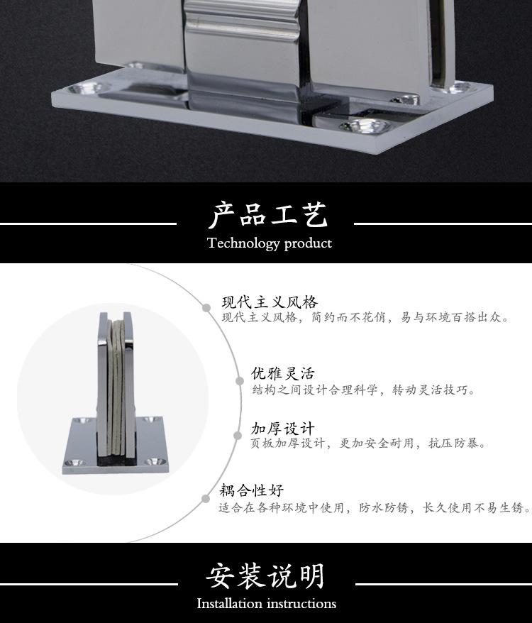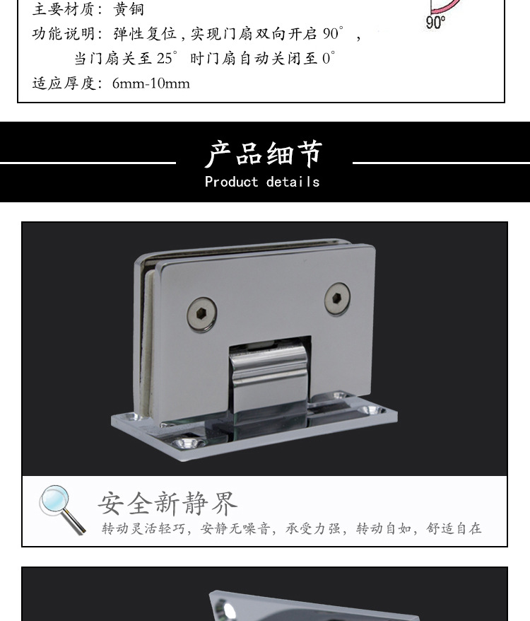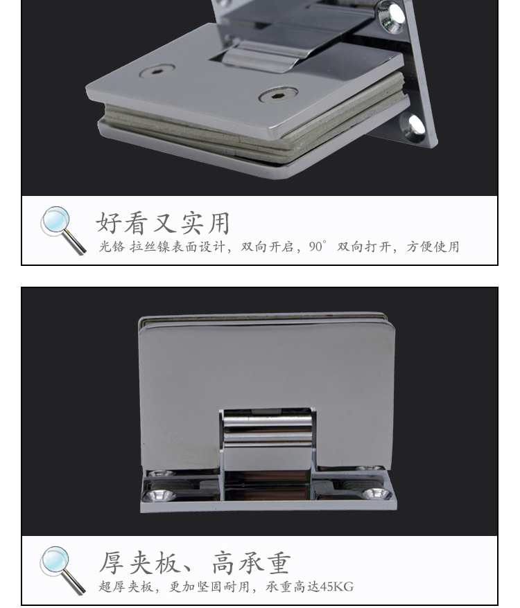 2、主要用于各種玻璃門(mén)、淋浴房門(mén)等。夾6-12mm玻璃
